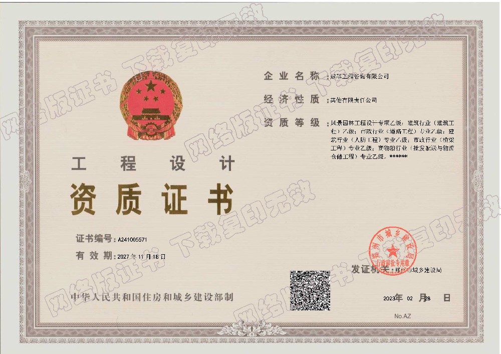 • 工程設(shè)計(jì)乙級(jí)資質(zhì)